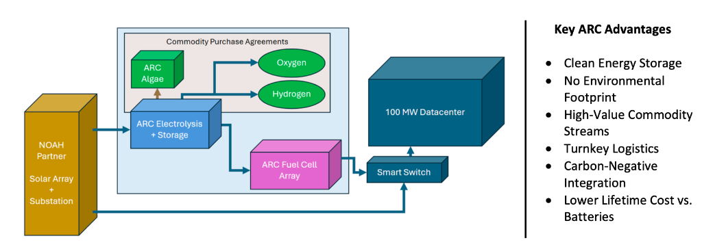 Adaptable Renewable Commodities. A modular, zero-emission ecosystem that transforms water and excess energy into valuable hydrogen, oxygen, and algae.