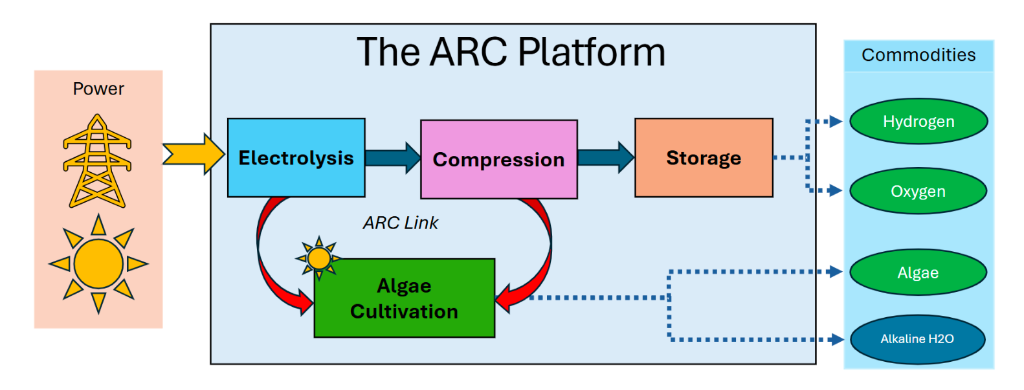 Adaptable Renewable Commodities. A modular, zero-emission ecosystem that transforms water and excess energy into valuable hydrogen, oxygen, and algae.